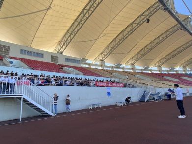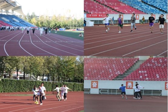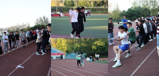 随后,运动会正式开始。陆续开展了男子100米、男子1500米、男子实心球、跳高、铅球、跳远、女子100米、实心球、铅球等单人项目,以及男女混合4*100米、足球射门、两人三足、拔河等集体项目。