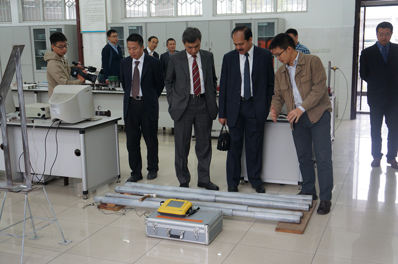 10月16日,印度铁道部培训与人力规划执行主任Rajiv Ranjan Prasad和效率与研究部执行主任Nikhil Pandey来访西南交通大学,下午2点半代表团来到力学实验中心,中心常务副主任高芳清教授、院长助理蒋晗教授陪同代表团参观了国家级力学教学示范中心基础力学实验室、个性化实验室及综合创新实验室。