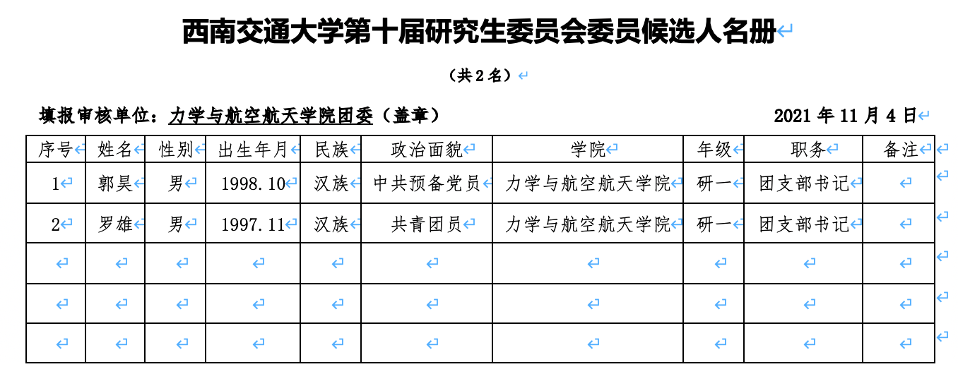 经班级(团支部)和学院研究生会推荐,现将拟推荐参加91直播 第十次研究生代表大会的代表名单与委员名单进行公示。如有异议,请于11月20日17:00前向学院团委反映,地点:X30279,电话:66366796。