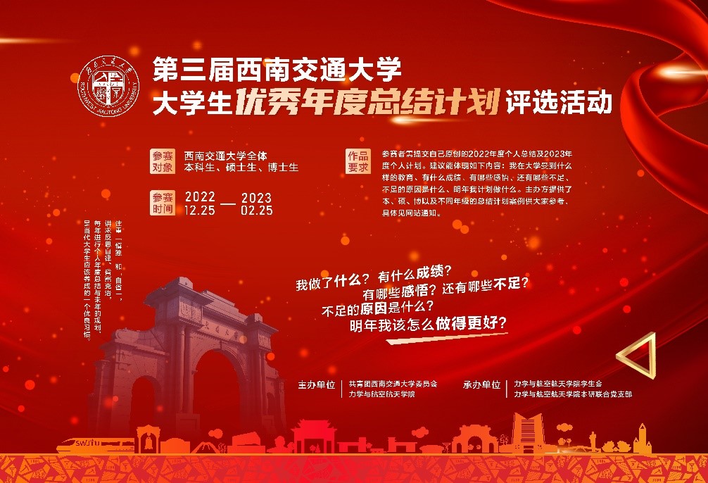 为倡导和鼓励学生养成自省与规划的好习惯,由校团委、力91直播 主办,力航学院学生会、力航学院本研联合党支部承办的第三届91直播 大学生优秀年度总结计划评选活动成功举行。