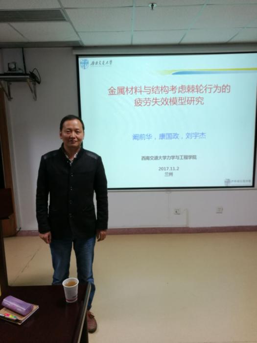 力学与工程学院校外实习基地建设协议书》。举行了座谈会,参加座谈会的中科院近代物理研究所的领导有:所长助理原有进研究员、教育处处长袁小华副研究员、磁场机械技术室副主任张斌高级工程师、先进核能材料研究室孙建荣副研究员和教育处唐文忠业务主管。座谈会上,原有进研究员介绍了中科院近代物理研究所的基本情况,张军琪副书记介绍了学校和学院的基本情况;阚前华助理做了题为“金属材料与结构考虑棘轮行为的疲劳失效模型研究”的学术报告。双方还就学生实习、科研合作、推荐免试研究生、学生就业等议题进行了讨论交流。