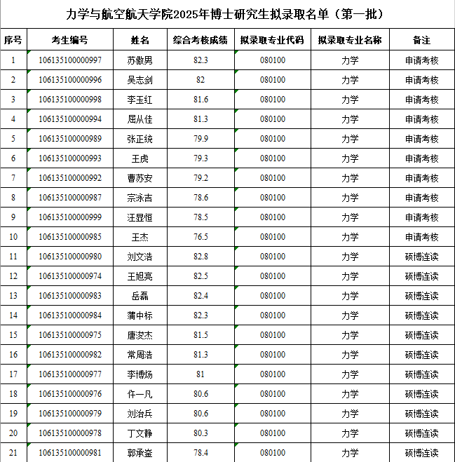 力91直播 2025年博士研究生拟录取名单如下(第一批)。