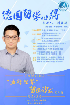 11月26日,“力行世界”留学沙龙第六期在X2323举行,本次讲座特邀刘牧远老师为同学们讲述德国留学心得。
