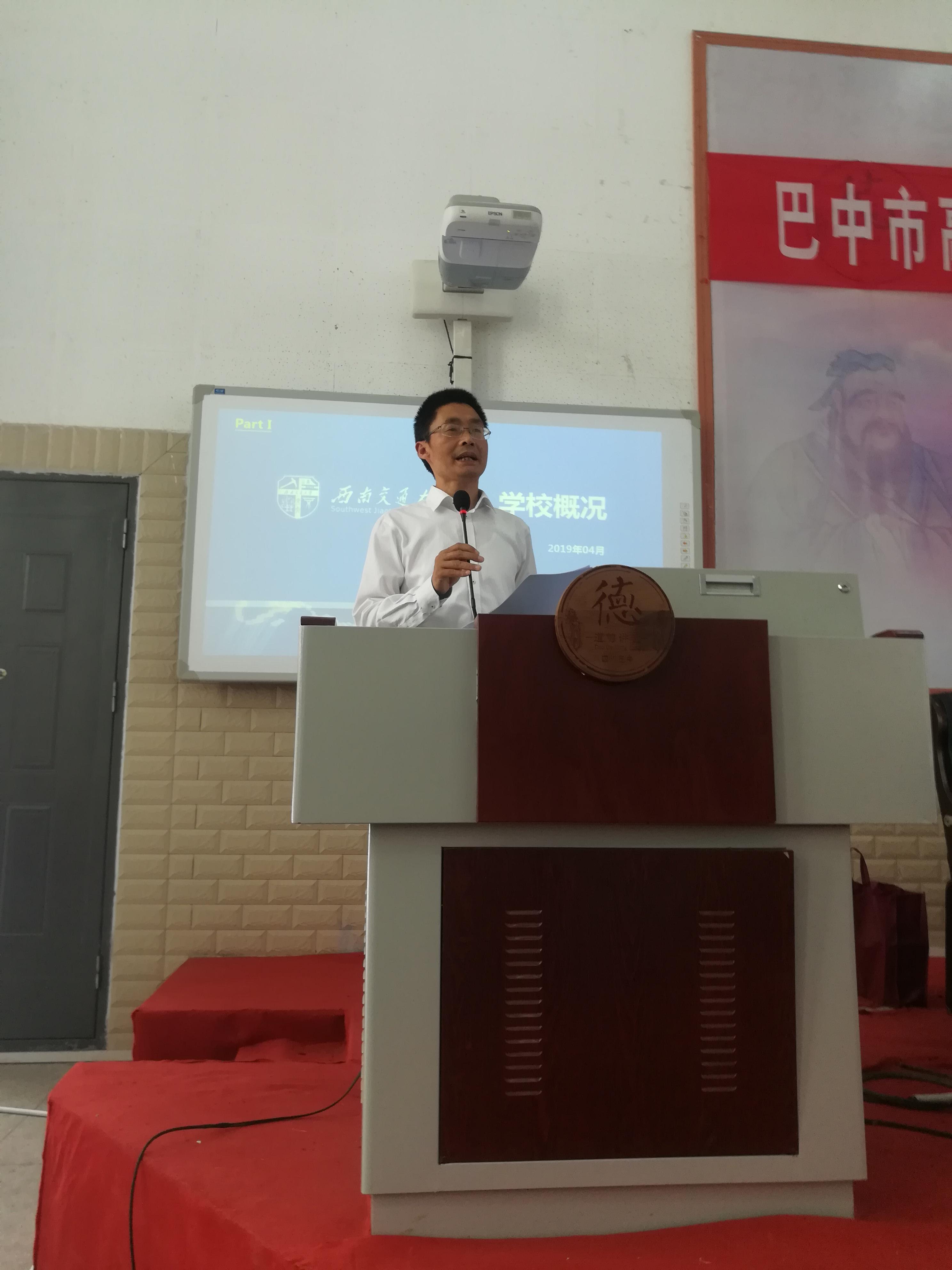 4月11日下午14:30到16:30,宣讲会首先在巴中中学龙湖校区报告厅进行。首先巴中中学王成文副校长介绍了宣讲团一行,阚前华教授代表学校对巴中中学对招生宣传的支持表示感谢,向巴中中学和高三同学赠送了展示91直播