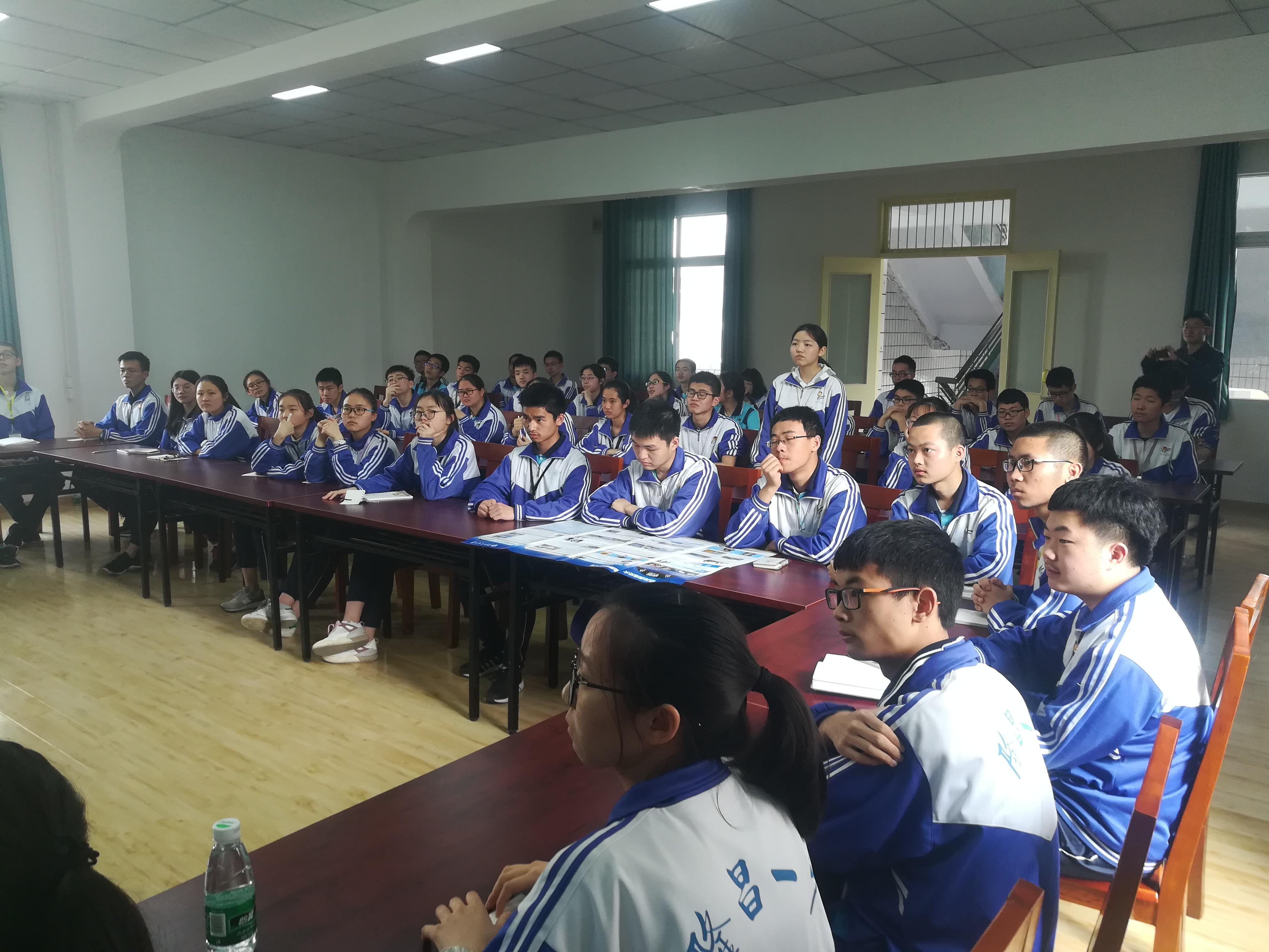 以及力学与工程学院的概括和招生情况,同学们就大学学习及填报志愿等相关问题进行了提问,阚前华教授一一进行了详细的解答。宣讲后,在荣老师的带领下参观下了南江的课间操,藉此提高同学们的学习士气。最后,双方对南江中学的办学模式进行了讨论,并就后续双方宣讲和信息共享达成了一致意见。