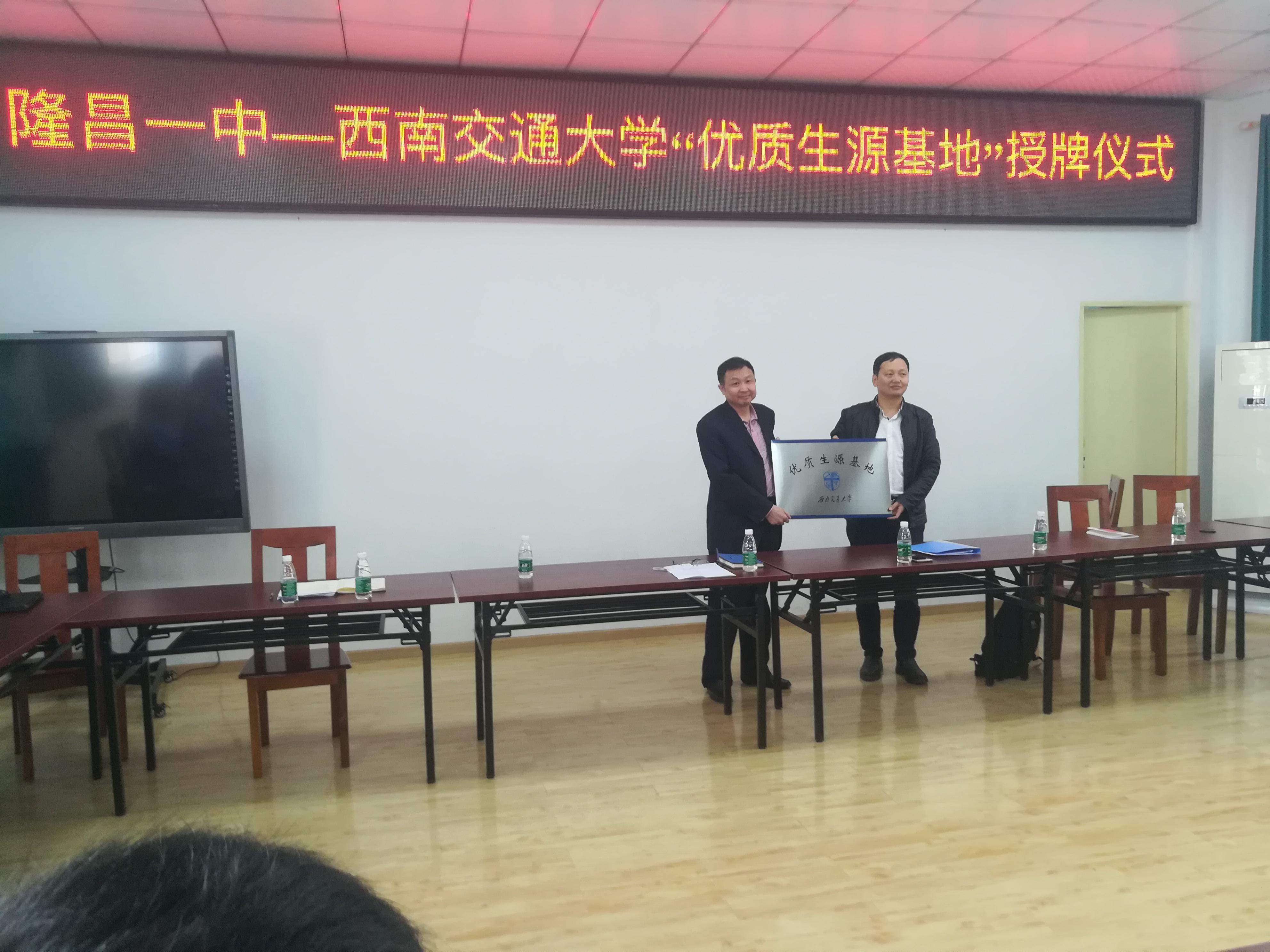 优质生源基地”的授牌仪式。在隆昌一中高三优秀学子的见证下,阚前华教授代表学校向隆昌一中授予了“91直播