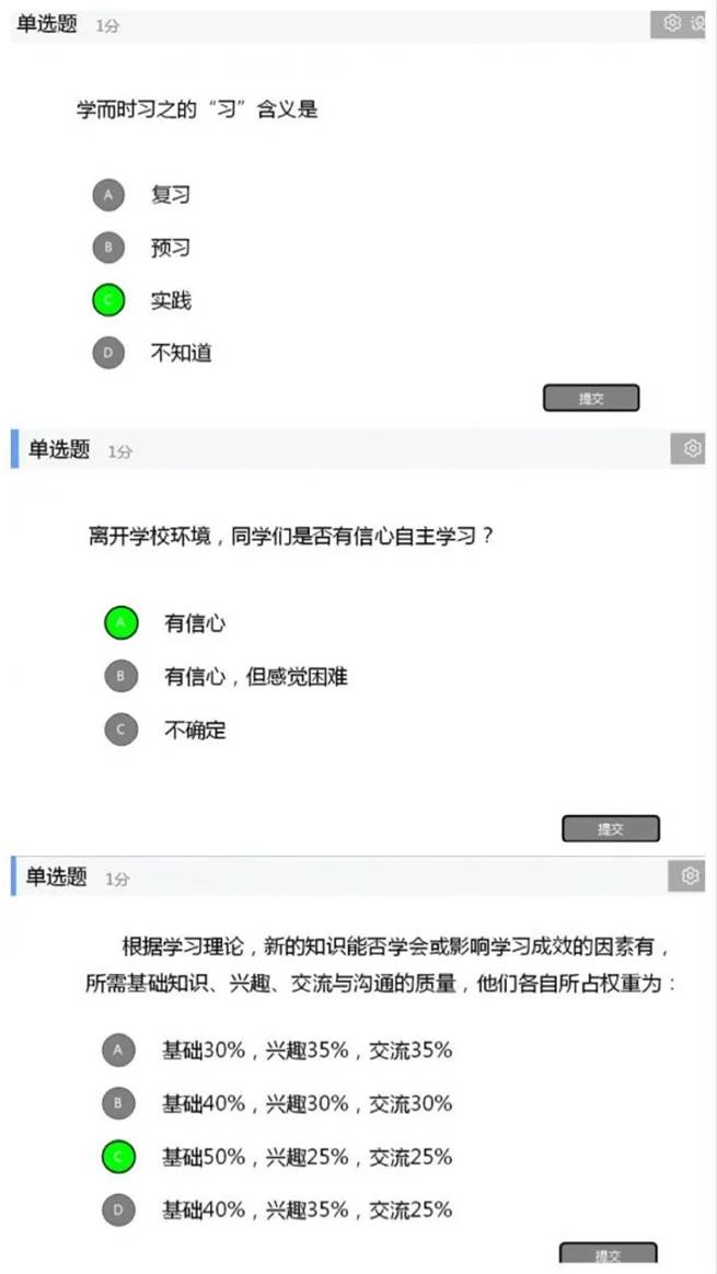 2. 利用雨课堂直播或QQ直播(若雨课堂网络流畅,只用雨课堂。期待雨课堂能流畅使用!)与老师交流,回答问题,检验学习效果;(部分互动问题见附图)