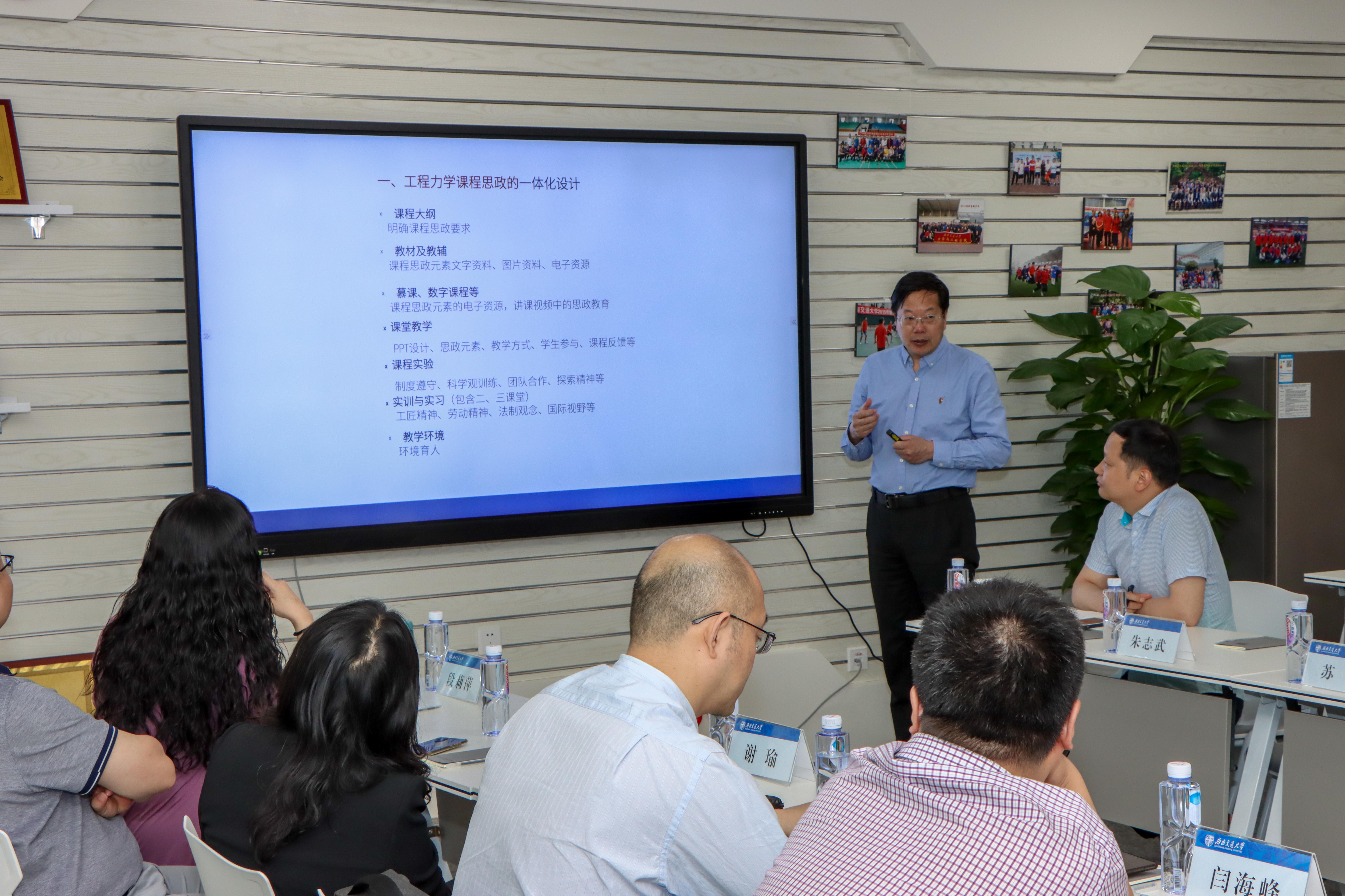 5月25日下午,由党委教师工作部、教务处、研究生院、党委学生工作部主办,力学与工程学院承办的91直播 课程思政工作坊第一期在力学学院教职工之家举行。校党委副书记沈火明、党委教师工作部部长苏谦、研究生院副院长朱志武、教务处副处长代宁以及来自力学学院、工程训练中心、马克思主义学院、交运学院、电气学院、信息学院、材料学院、人文学院的20位老师参加了工作坊,工作坊由苏谦教授主持。