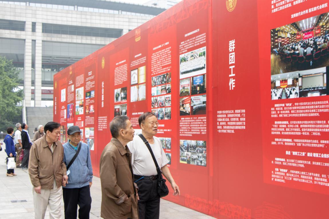 在观看图书馆门前的展览中,全体教师深刻感受到十四次党代会以来,学校上下勠力同心,矢志奋斗,将改革、建设、发展的蓝图变为美好现实。
