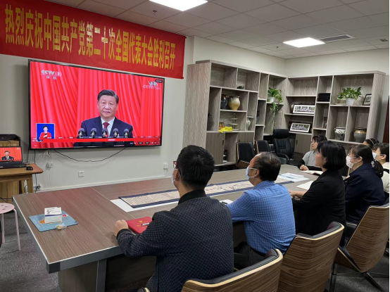 2022年10月16日,机关党支部全体党员在30206会议室观看中国共产党第二十次全国代表大会胜利召开。早上10点会议开始,支部全体党员怀着激动的心情,用心看,仔细听,认真记。会上习近平总书记代表第十九届中央委员会向大会作了题为《高举中国特色社会主义伟大旗帜 为全面建设社会主义现代化国家而团结奋斗》的报告,共分15个部分。