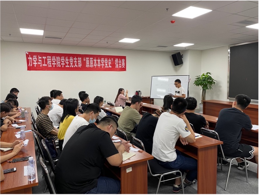 为庆祝中国共产党建党100周年,扎实推进党史学习教育,6月10日下午,力学与工程学院在犀浦校区X30224会议室举办了2021年“原原本本学党史”研究生党支部擂台赛。研究生辅导员张英蓉老师、学院全体研究生党员参加了活动,本次活动由学院辅导员于红琴老师主持。