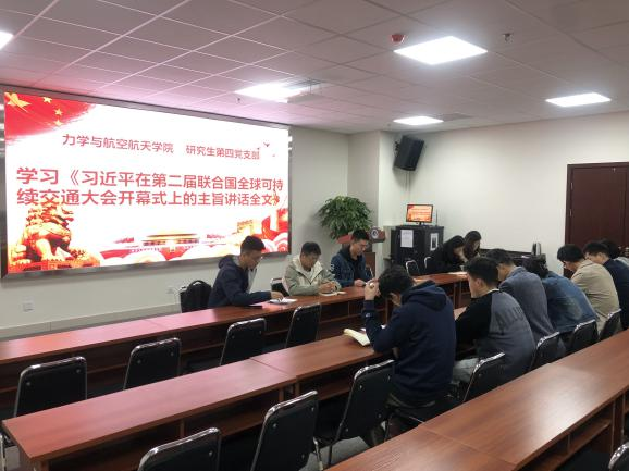 研究生第四党支部专题学习习近平在第二届联合国全球可持续交通大会开幕式上的主旨讲话