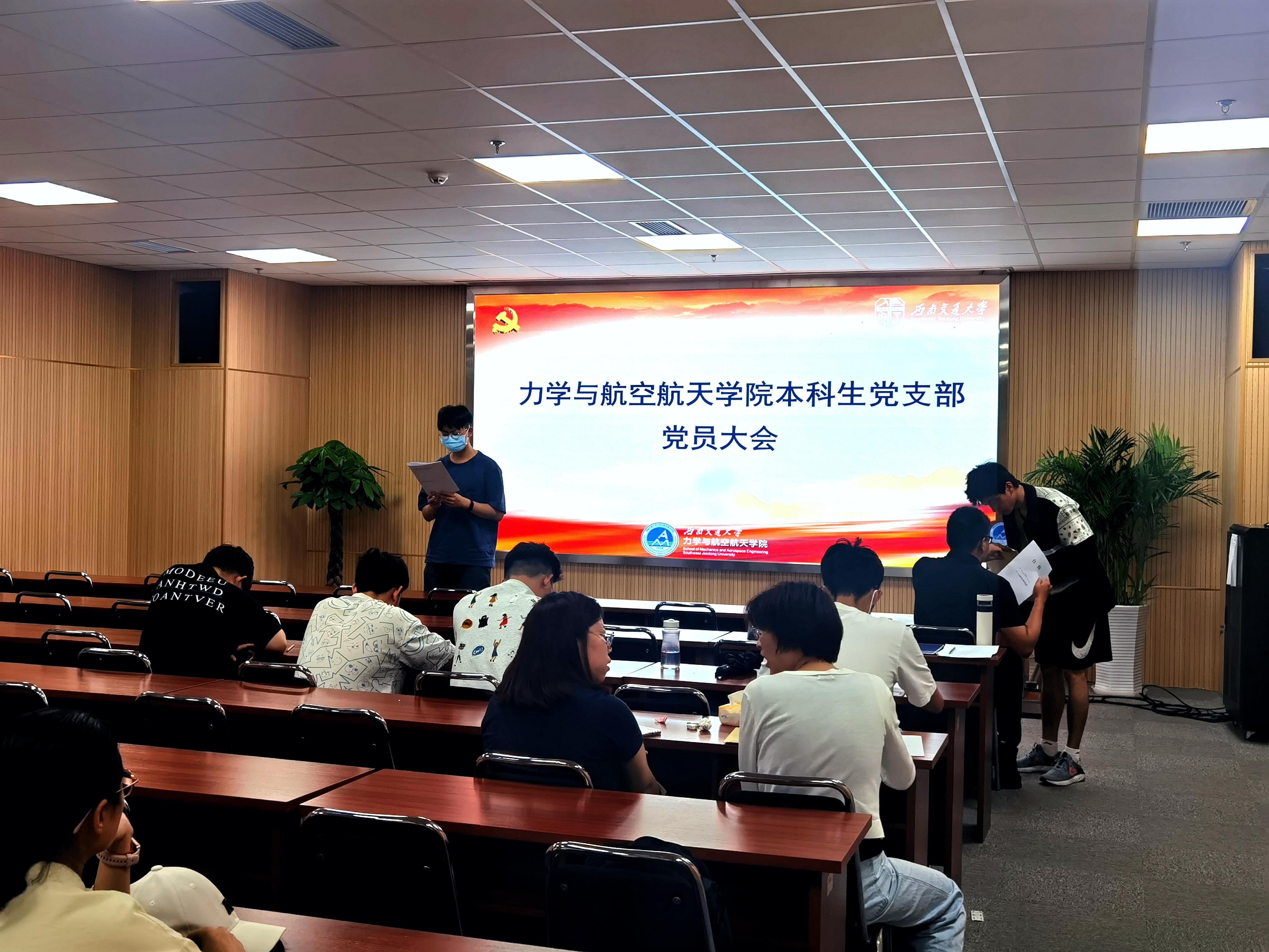 2023年6月2日下午,力航学院本科生党支部在X30224召开了2023年上半年预备党员接收暨党员主题教育理论学习大会,本科生党支部16名正式党员、19名预备党员和25名发展对象参与本次大会。
