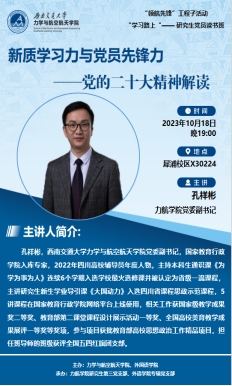 10月18日晚,读书班活动在犀浦校区X30224会议室举行,本次活动邀请力航学院党委副书记孔祥彬老师以“浅谈新质学习力与党员先锋力——党的二十大精神解读”为题开展了主题党课。