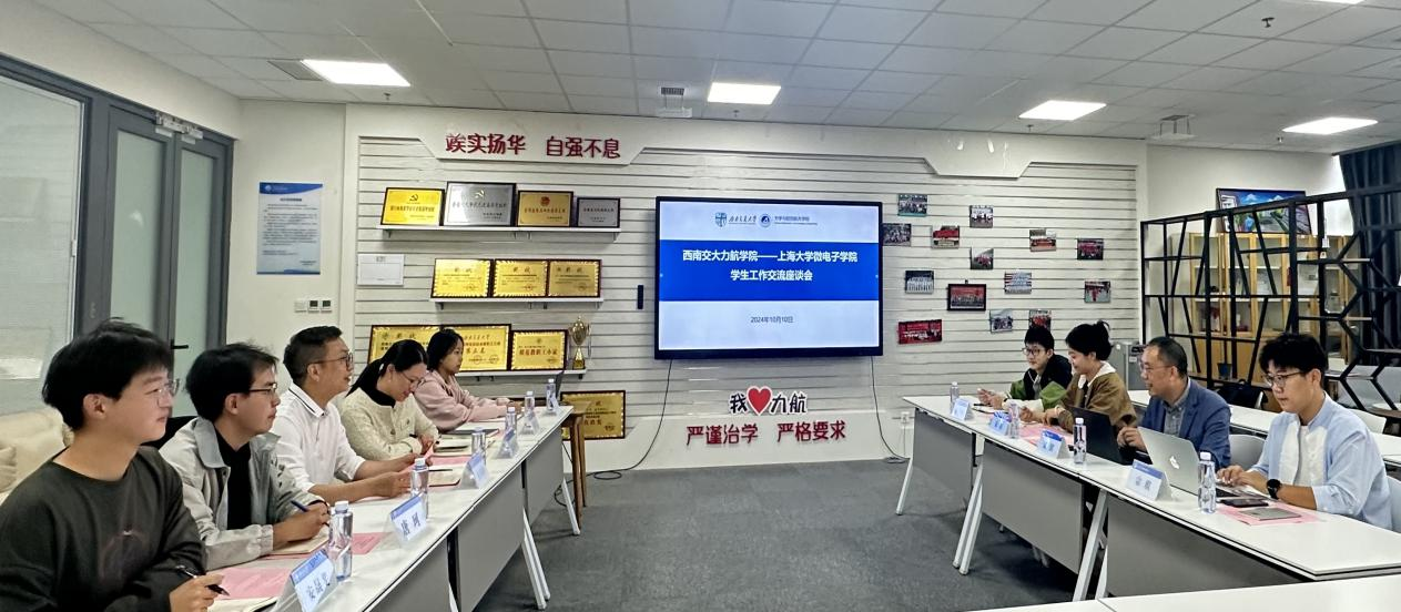 最后,双方就力航“五力育人”体系、辅导员工作室建设、如何为学生提供更多更优服务等方面展开了热烈的讨论。袁铭表示:听完报告,强烈地感受到西南交大力航学院学生工作“基础工作扎实,增量工作有效,杂项工作细致,特色工作亮眼”,希望将一些成熟工作模式和方法引进到上海大学微电子学院,加强两院未来的交流合作,共同培育时代新人。