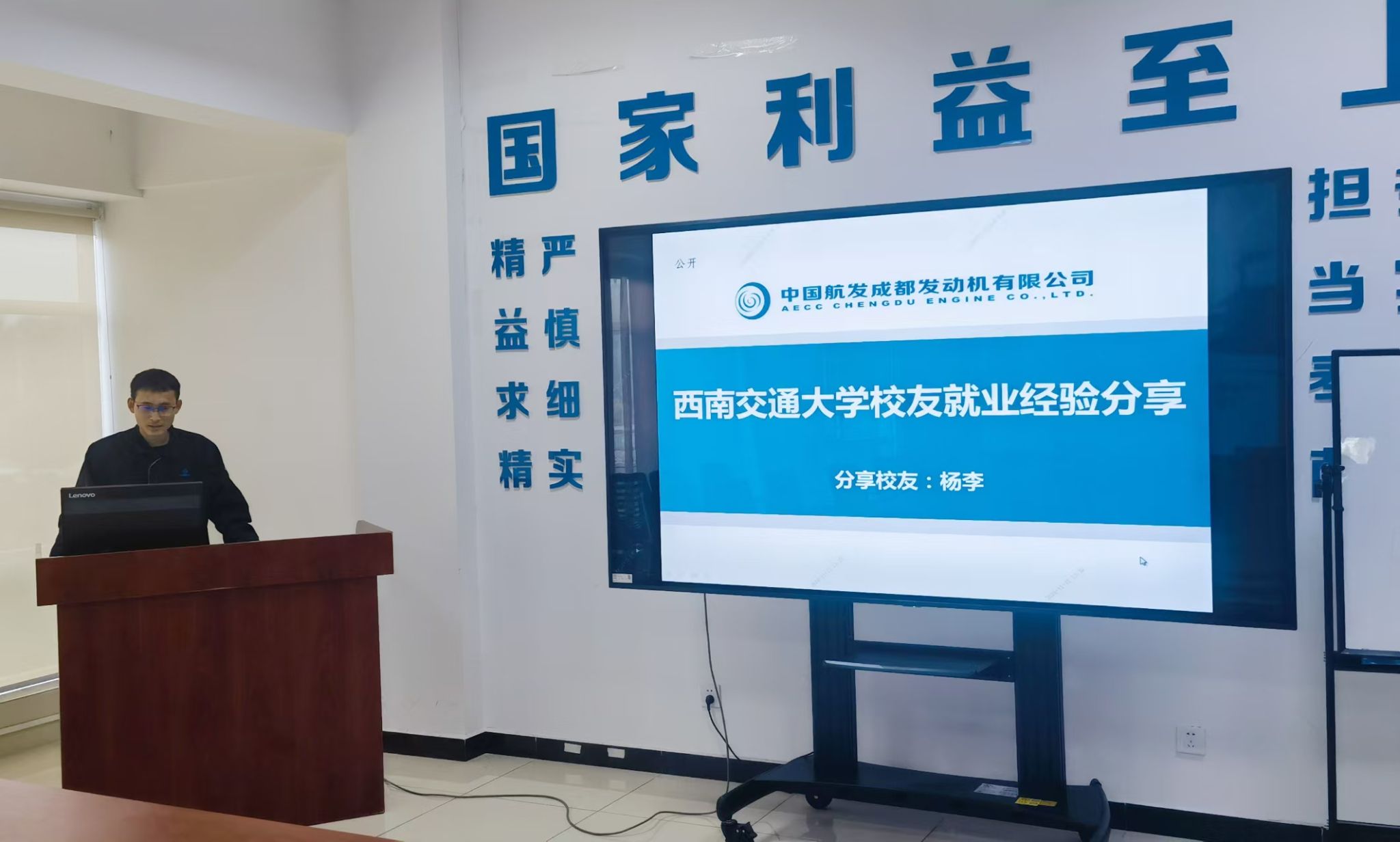 随后,在校企座谈会上,有幸邀请到了在中国航发成都发动机有限公司的工程师校友杨李等资深工程师。他们结合自己的工作经验和职业成长经历,向党员们分享了航空领域的就业市场趋势、职业发展路径以及所需技能的学习等宝贵信息。同时,他们还就党员们关心的行业热点问题进行了深入解答,帮助党员们加深了对行业的理解。