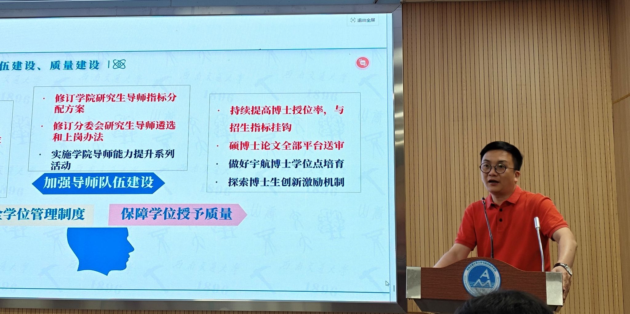 沙龙第三项议程,李鹏副院长作学位与研究生教育工作相关政策宣贯。从研究生培养工作、研究生学位管理工作、研究生招生工作和学院重点工作四个方面详细阐释了学校和学院研究生工作体系与具体做法,鼓励研究生导师主动适应新形势下的教学与科研工作。