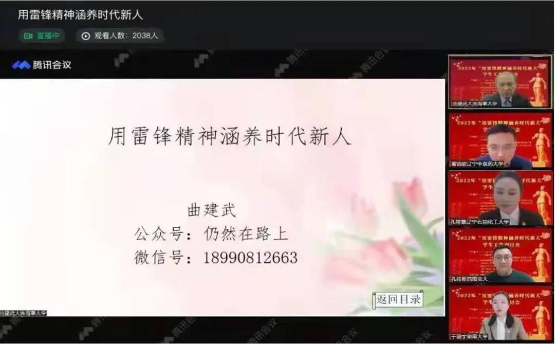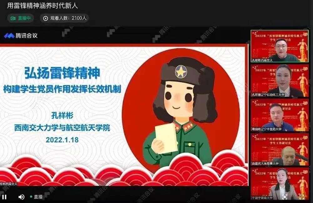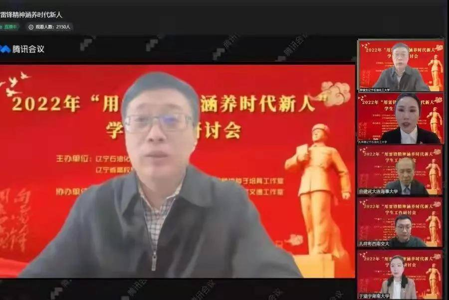 等单位协办的2022年“用雷锋精神涵养时代新人”学生工作研讨会在线上成功举办。来自全国百所学校的思想政治工作者、辅导员及学生,共计2200余人参加本次研讨会,会议由辽宁石油化工大学石油天然气工程学院党委副书记、新时代雷锋精神种子培育工作室负责人孔祥慧主持。