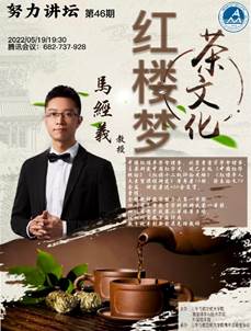 5月19日19:30,中国红楼梦学会理事、北京曹雪芹学会理事、交大校友马经义教授受邀做客“努力讲坛”第45期(美育系列),讲座主题为“红楼梦中的茶文化”。本次讲座由力航学院、物理学院及外语学院联合主办,力航学院青年志愿者协会承办,通过腾讯会议的形式进行。力航学院党委副书记孔祥彬老师、物理学院党委副书记郭剑老师、外语学院党委副书记武俊老师及学校300余名师生参加了本次讲座。