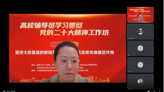 南昌大学人文学院党政办副主任徐国林围绕“学生‘党建+’的实践与探索”作了主题汇报,他介绍了学院探索“党建+思政”、“党建+创新创业”、“党建+人才培养”、“党建+校园文化建设”的模式,全方位、多角度培养德智体美劳全面发展的社会主义建设者和接班人的举措和成效。91直播