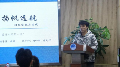 力学2022级拔尖班团支书陈帅铭同学进行了题为“力拔头筹,气壮山河——双严精神下的力学拔尖班建设”的主题报告,生动地展现了力学拔尖班多样的集体建设活动和班级的优秀成果。