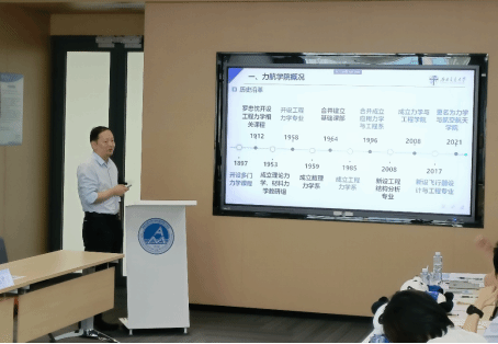 首先,陈臻林教授代表成都理工大学环境与土木工程学院介绍了成都理工大学力学学科建设及工程力学系的发展历史及当前现状。陈教授介绍到,成都理工大学工程力学系2008年新成立,2022申请到了力学硕士点,随后获批省一流专业。但工程力学系在快速发展的同时也面临如人才队伍建设滞后、教师课程压力较大、专业建设经验不足等问题。陈教授指出本次交流期望以工程力学专业建设为切入点,重点探讨力学培养方案修订、专业课程建设、教材建设、学生培养、学风建设等方面。