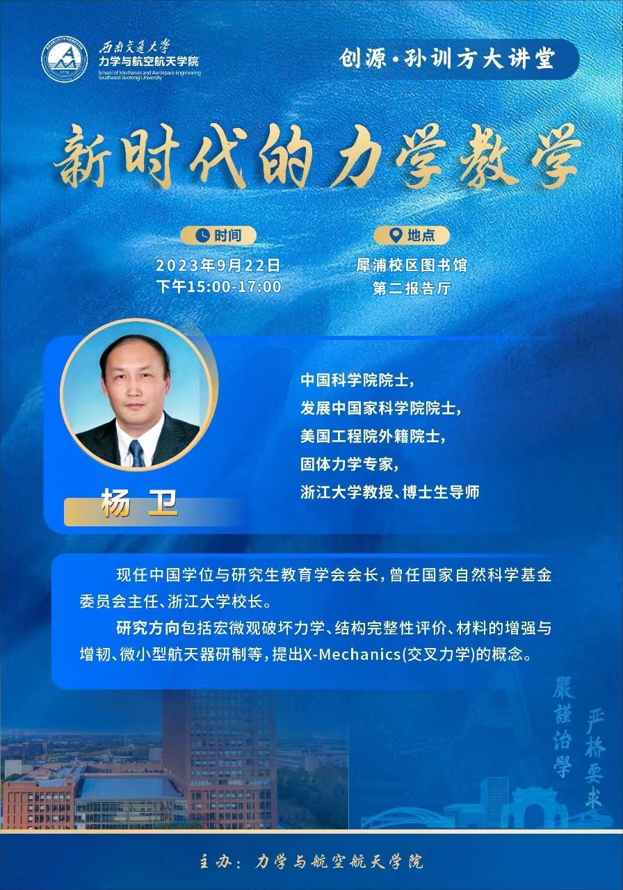 上一条:纪念孙训方先生诞辰100周年力学青年教师学术交流沙龙第1期 下一条:2023-2024学年第一学期青年教师教学能力提升系列活动