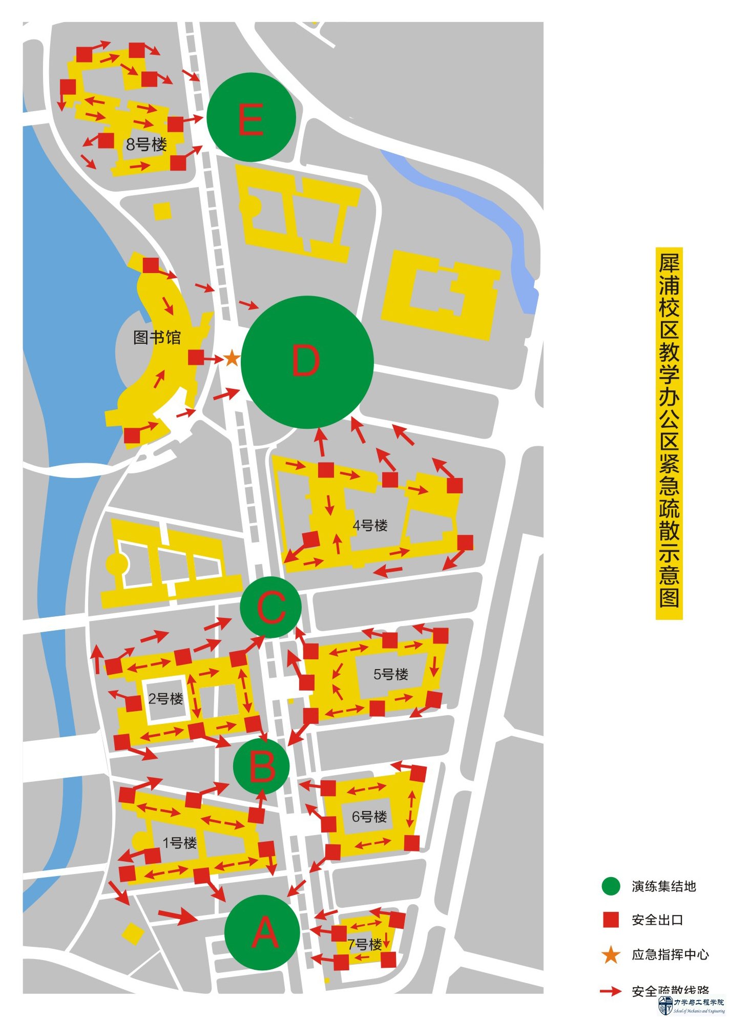请5月11日下午第一讲有课的教师,提前15分钟到达教室,并在演习警报拉响后立即组织学生按照疏散路线有序撤离至演练集结地,演练结束后再带领学生回到课堂上课。