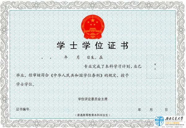 2、双学位证书:根据川学位[2009]6号文件精神,对在校生跨学科修读双学位专业,满足学位授予条件者,学校颁发双学位证书,国家承认学位,证书样本如下: